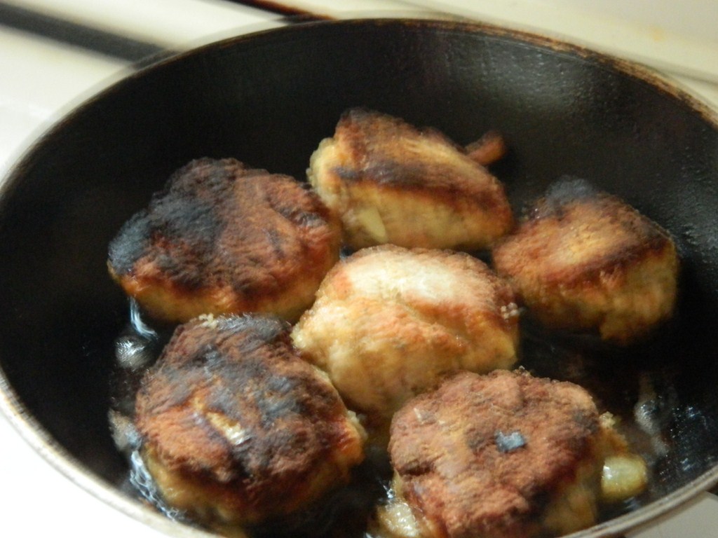 J'ai mis à nouveau de l'huile d'olive à chauffer dans la petite poêle (non recouverte de revêtement anti-adhésif) et j'ai fait cuire selon le temps indiqué sur la recette (6 à 7 minutes). Je crois même avoir laissé cuire un peu plus longtemps tout en surveillant la cuisson.