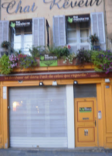 J'ai reconnu tout de suite cet endroit que j'ai eu l'occasion de voir cet été et que nous avions pris en photo, ma fille et moi-même, à plusieurs reprises. Les photos sont moins jolies que l'aquarelle-carte postale. Le nom de la boutique et la citation m'avaient tout de suite interpellée d'où les photos. L'aquarelle est signée Pascal Maucourant.