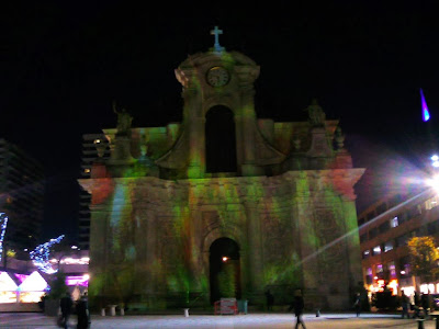 Des projections d'images accompagnées de bruissements de fond sonore sur la façade d'une église. Je me posais la question ce week-end de savoir à quoi correspondaient ces "arbres à lettres" (dernière photo). Je sais désormais. Projetées sur la façade et ordonnées, elles donnent les plus jolis des poèmes. Un régal pour l'âme et pour les yeux à condition de passer par ici au "bon" moment.