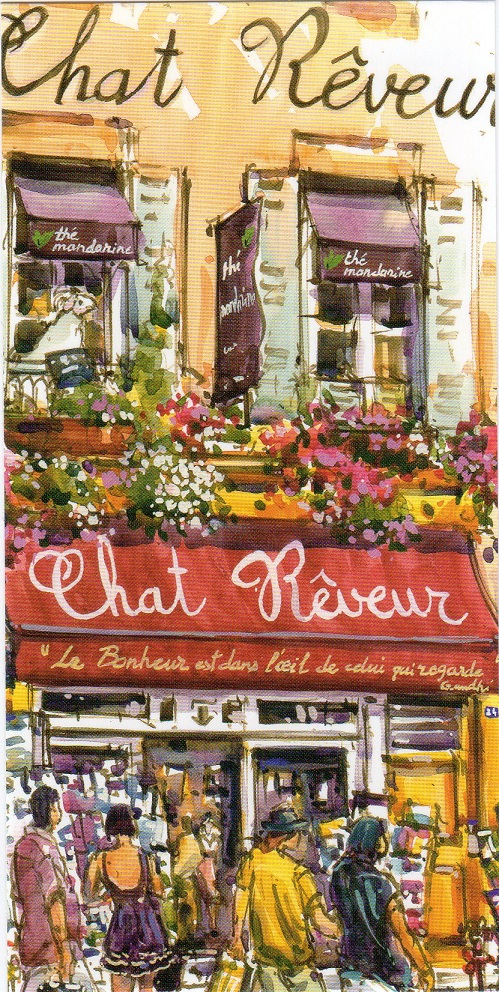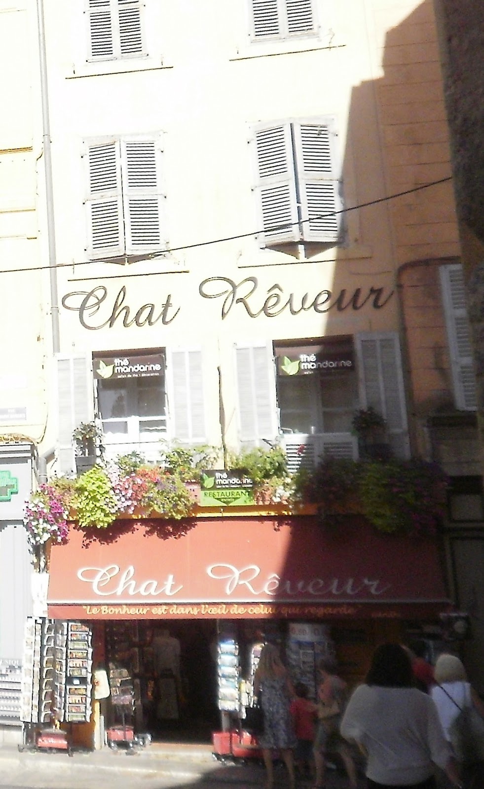 J'ai reconnu tout de suite cet endroit que j'ai eu l'occasion de voir cet été et que nous avions pris en photo, ma fille et moi-même, à plusieurs reprises. Les photos sont moins jolies que l'aquarelle-carte postale. Le nom de la boutique et la citation m'avaient tout de suite interpellée d'où les photos. L'aquarelle est signée Pascal Maucourant.