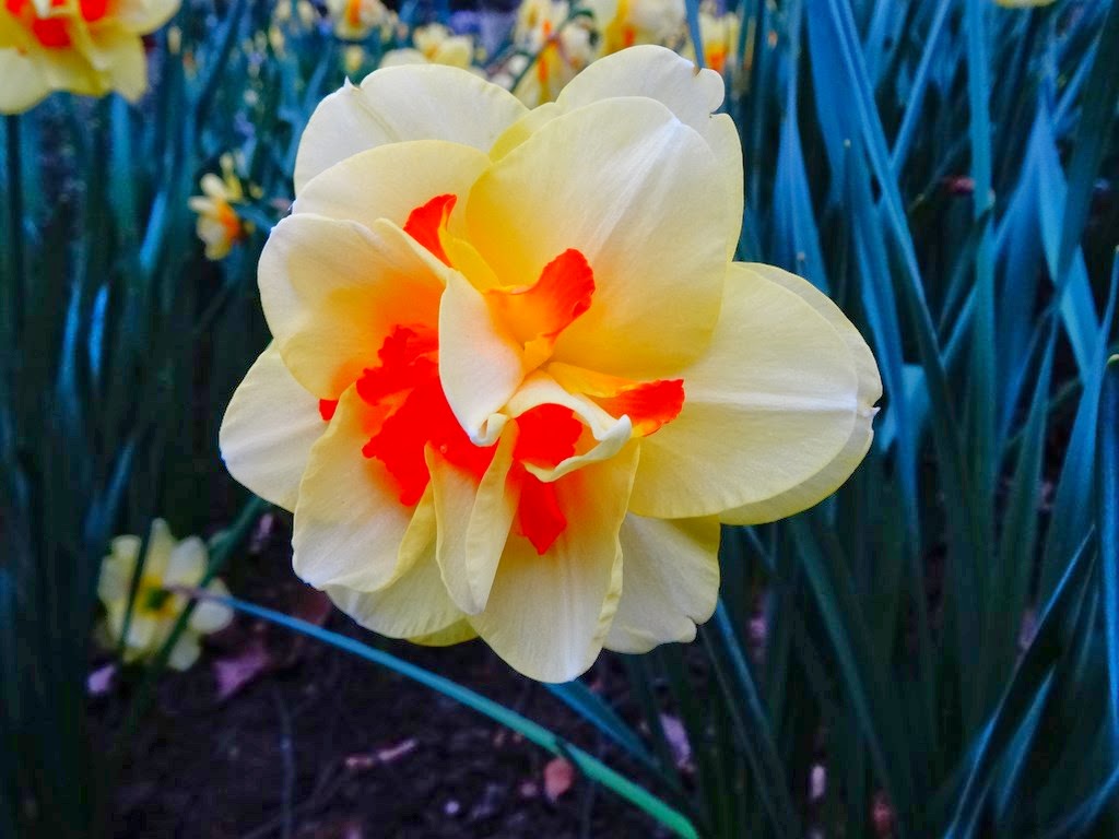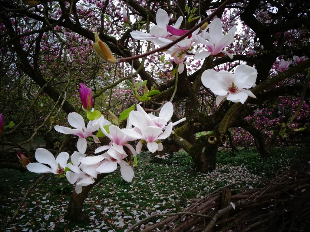 Passage aux urnes dans l'après-midi puis au parc en fin de journée. Le magnolia semble gonflé à bloc, mêlant ses fleurs couleur fuchsia à ses fleurs blanc rosé. L'odeur en est presque entêtante lorsqu'on s'approche de près mais bien agréable. Un petit oiseau s'ébroue dans une petite flaque d'eau non loin de là. Une tulipe est perdue, isolée au milieu de nulle part, seule. Et plus loin les jonquilles se dressent, fières de nous annoncer que le printemps s'est installé.