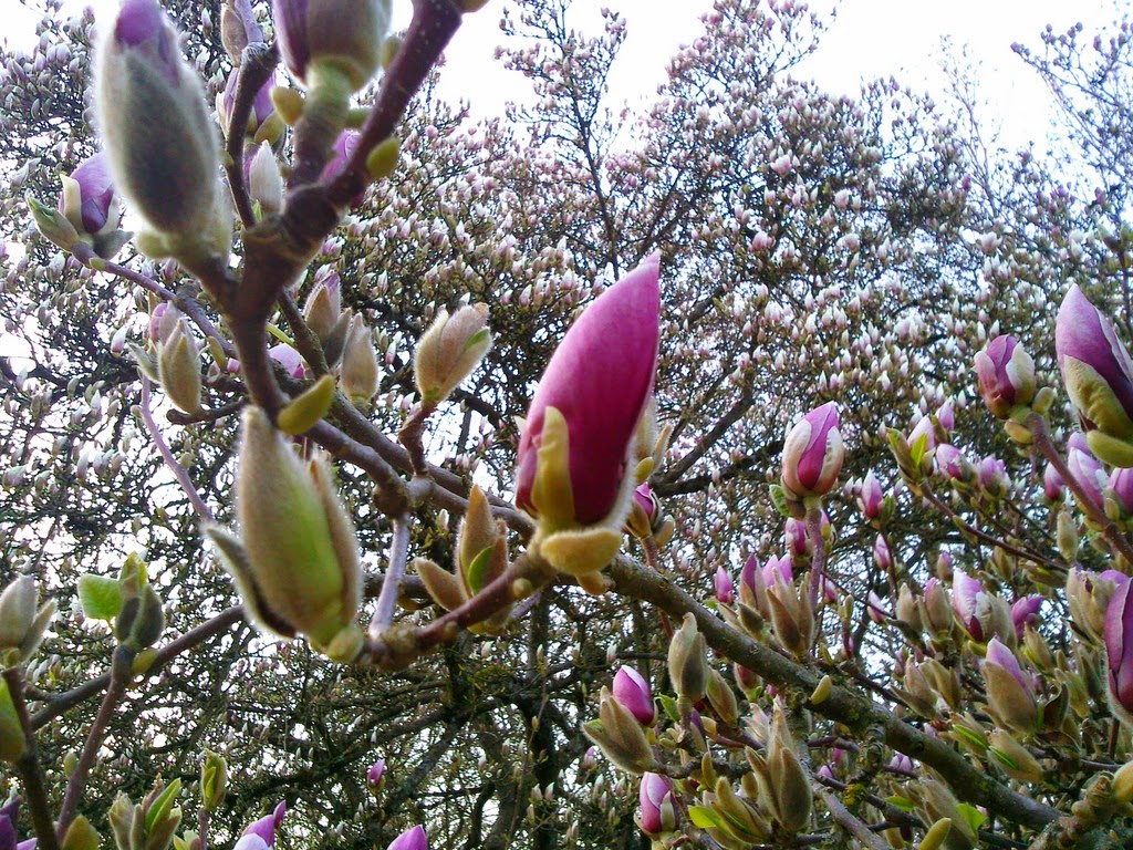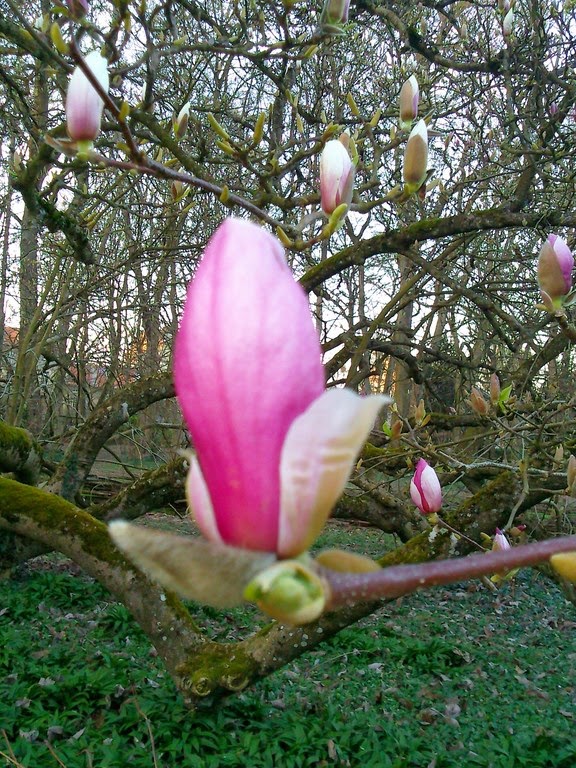 Passage aux urnes dans l'après-midi puis au parc en fin de journée. Le magnolia semble gonflé à bloc, mêlant ses fleurs couleur fuchsia à ses fleurs blanc rosé. L'odeur en est presque entêtante lorsqu'on s'approche de près mais bien agréable. Un petit oiseau s'ébroue dans une petite flaque d'eau non loin de là. Une tulipe est perdue, isolée au milieu de nulle part, seule. Et plus loin les jonquilles se dressent, fières de nous annoncer que le printemps s'est installé.